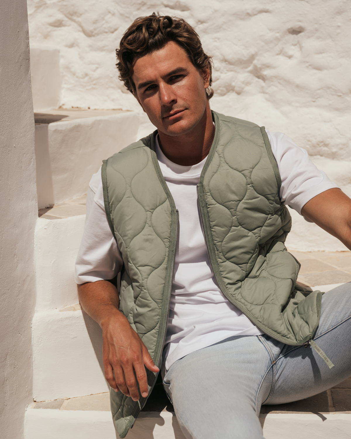 Seersucker Puffer Jacket - Ombre Blue